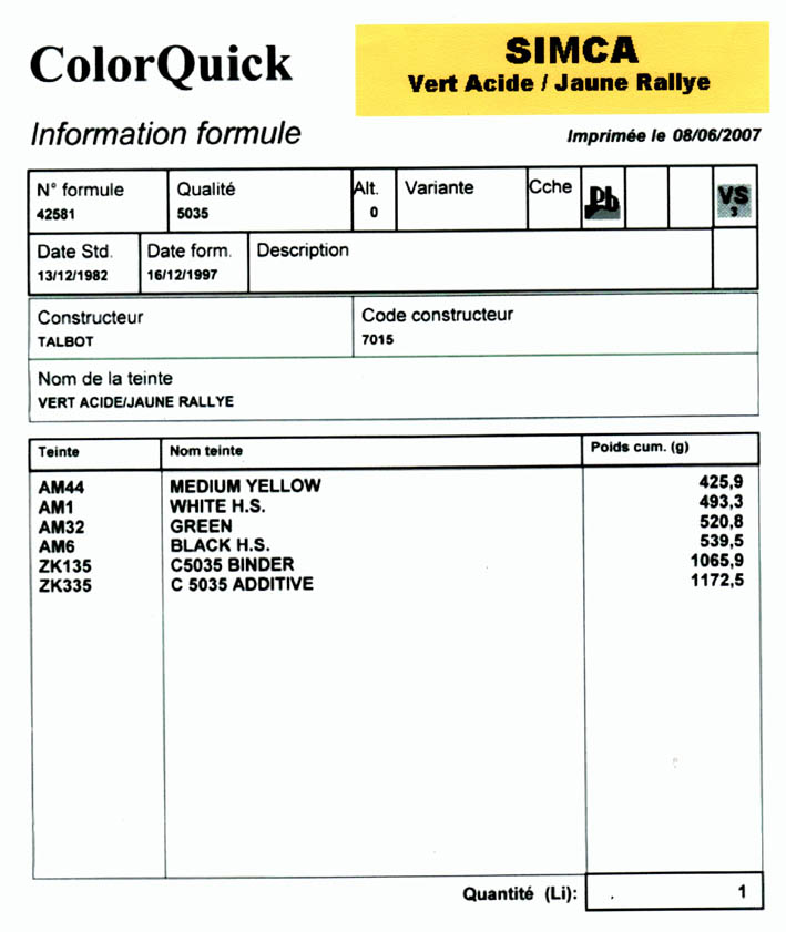 Interessante Infos über die Werksfarbangaben von Simca: